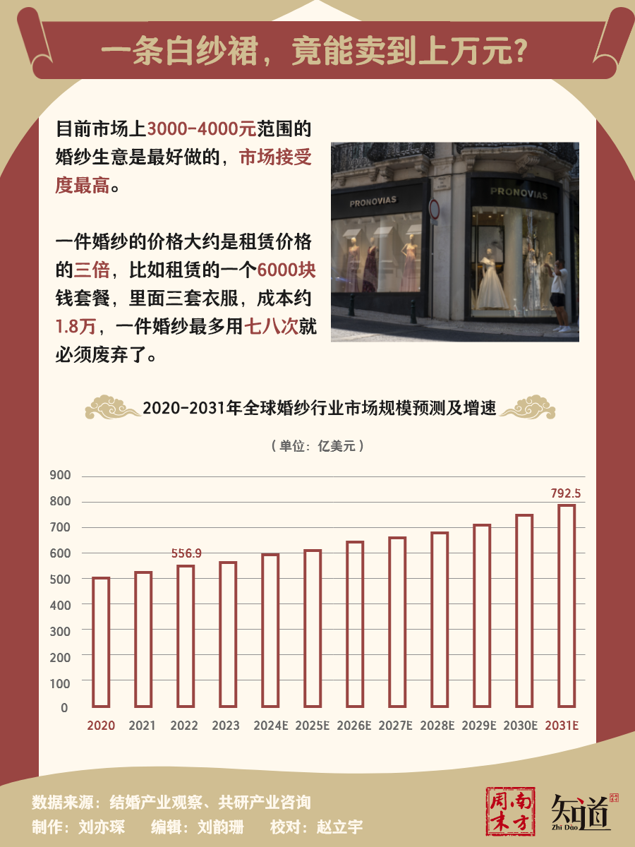 除此之外,还有采购、人力、维护与管理等多项支出,整体运营并不轻松。尽管如此,婚纱市场的规模仍在稳步增长,只是增速略有波动。