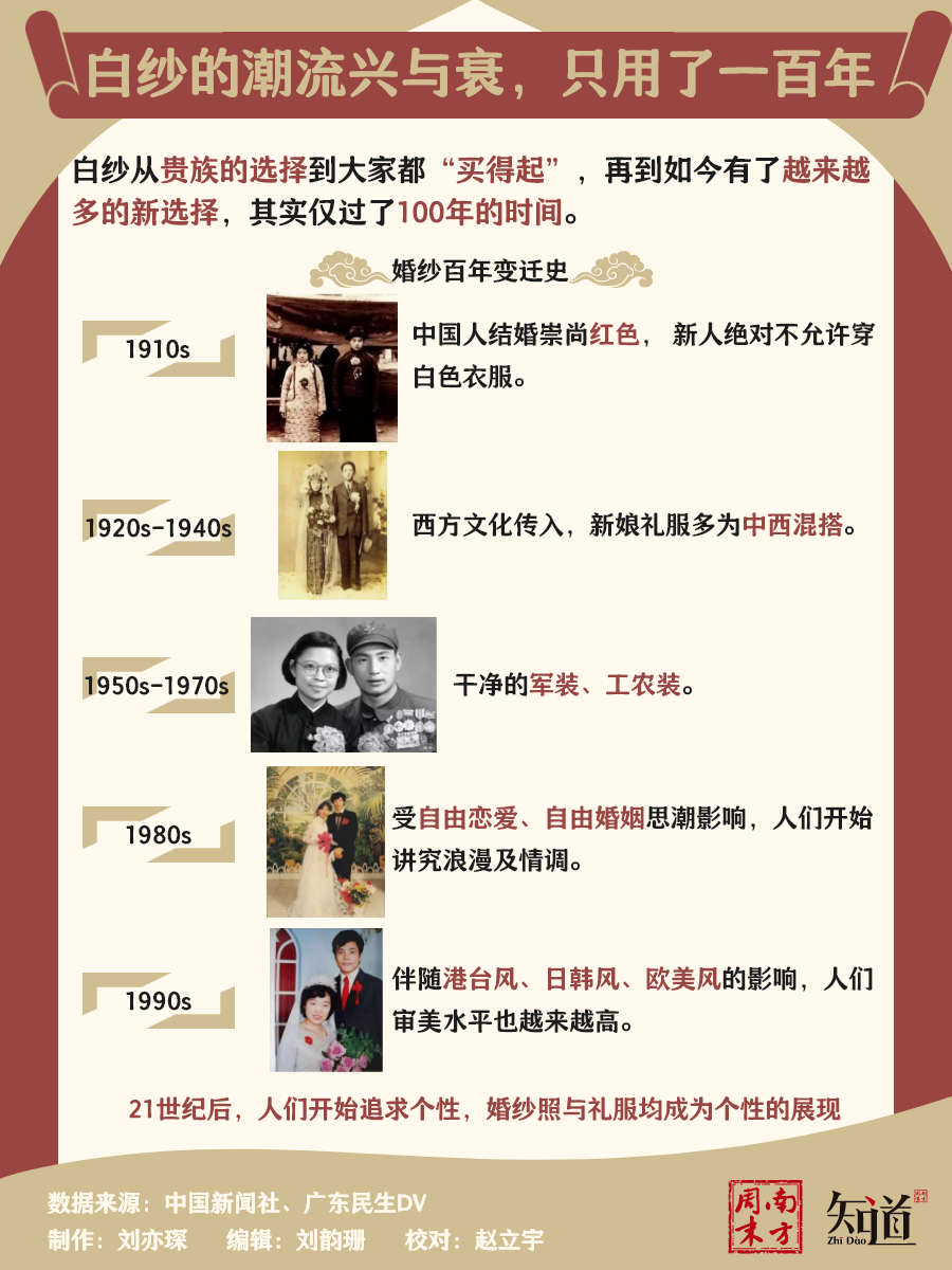 洁白的婚纱成为普通百姓的选择大概要追溯到上世纪80年代,那时受到自由恋爱、自由婚姻思潮的影响,人们开始讲究浪漫及情调。