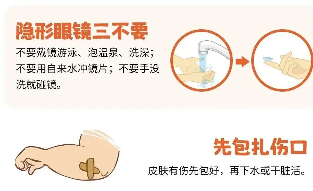 ■游泳前后要用流动水淋浴,游泳后要及时滴抗病毒眼药水,不与他人共用毛巾、泳镜。