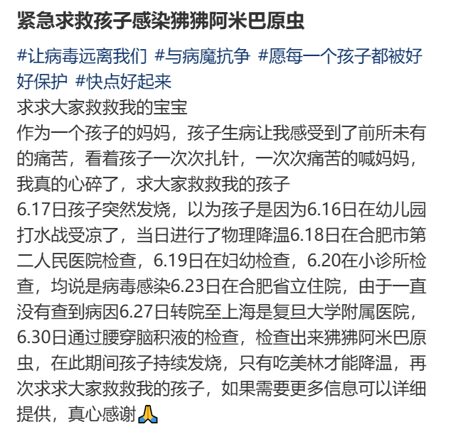一名男童的妈妈在社交平台上发帖求助称